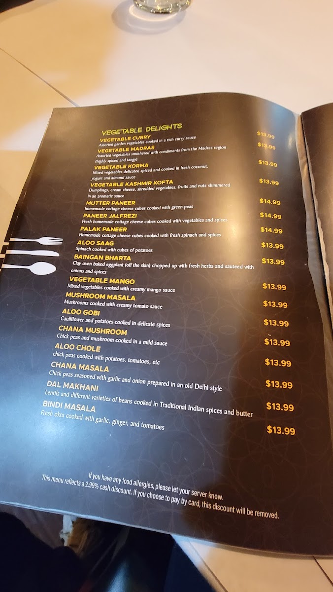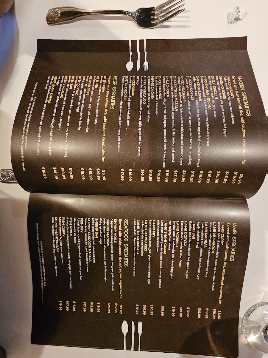 Introducing the Menu at Sitar Palace
